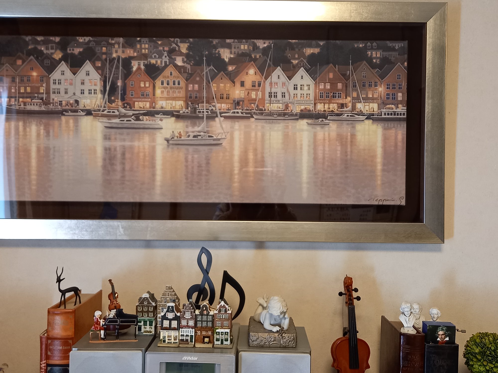 ノルウェーの世界遺産にもなった”ブリッゲン”をカラフルなハウス(倉庫)ではなく、木々もグリーンではなく、あえてブラウン系とグレー系で表現しています。
